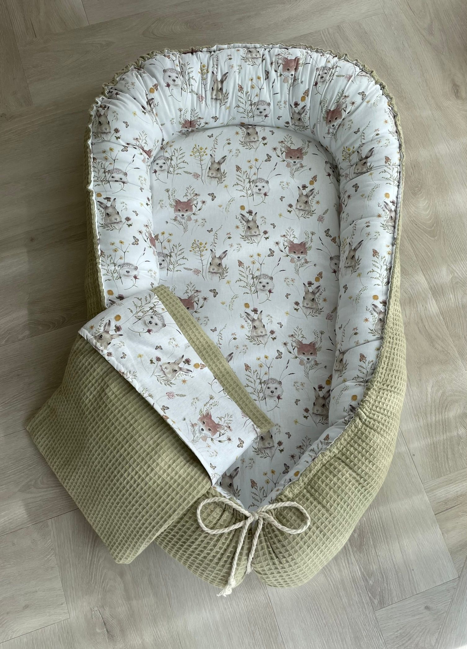 Dit babynestje is handgemaakt in NL met gecertificeerde stoffen.