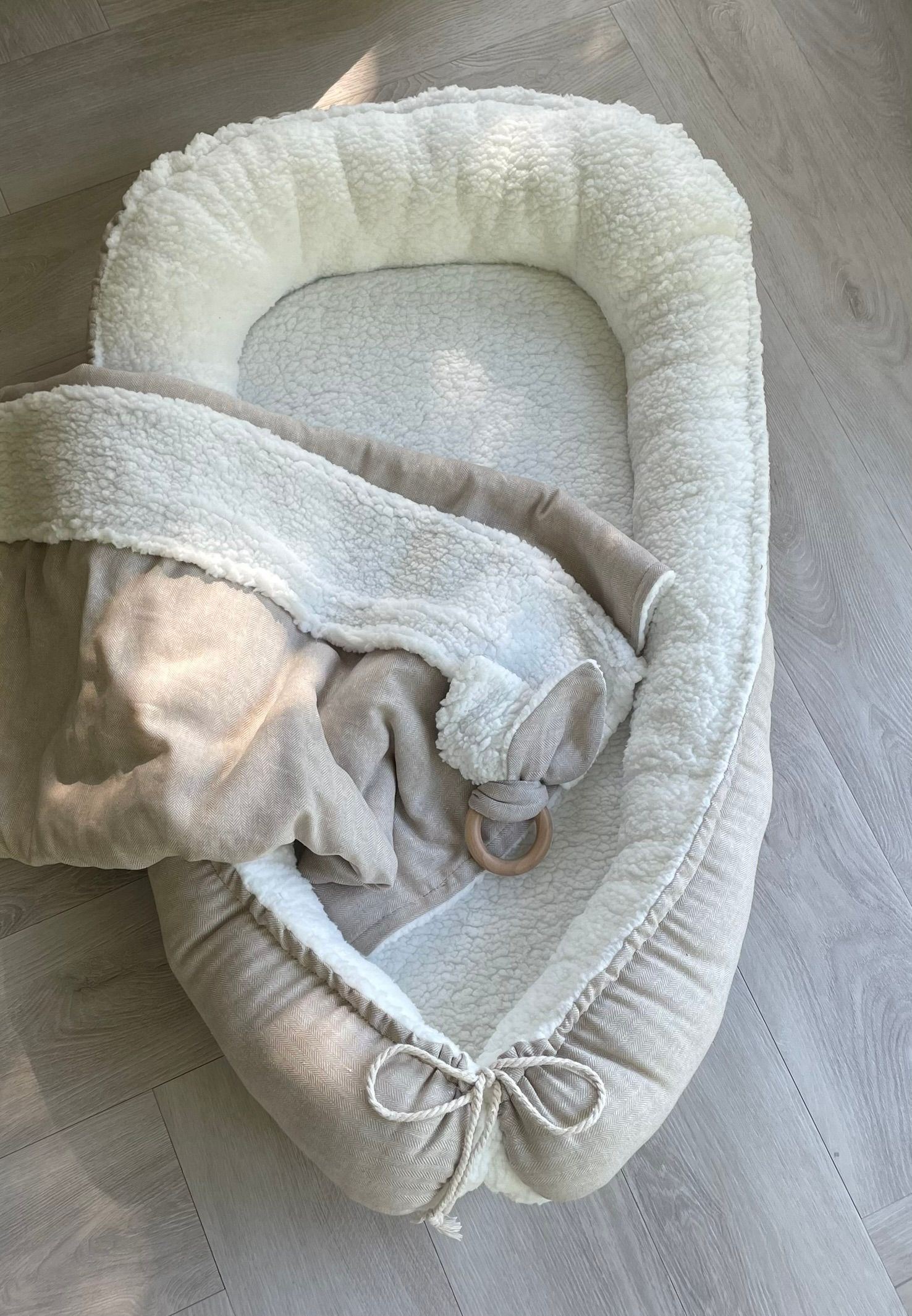 Dit babynestje is handgemaakt in NL met gecertificeerde stoffen.