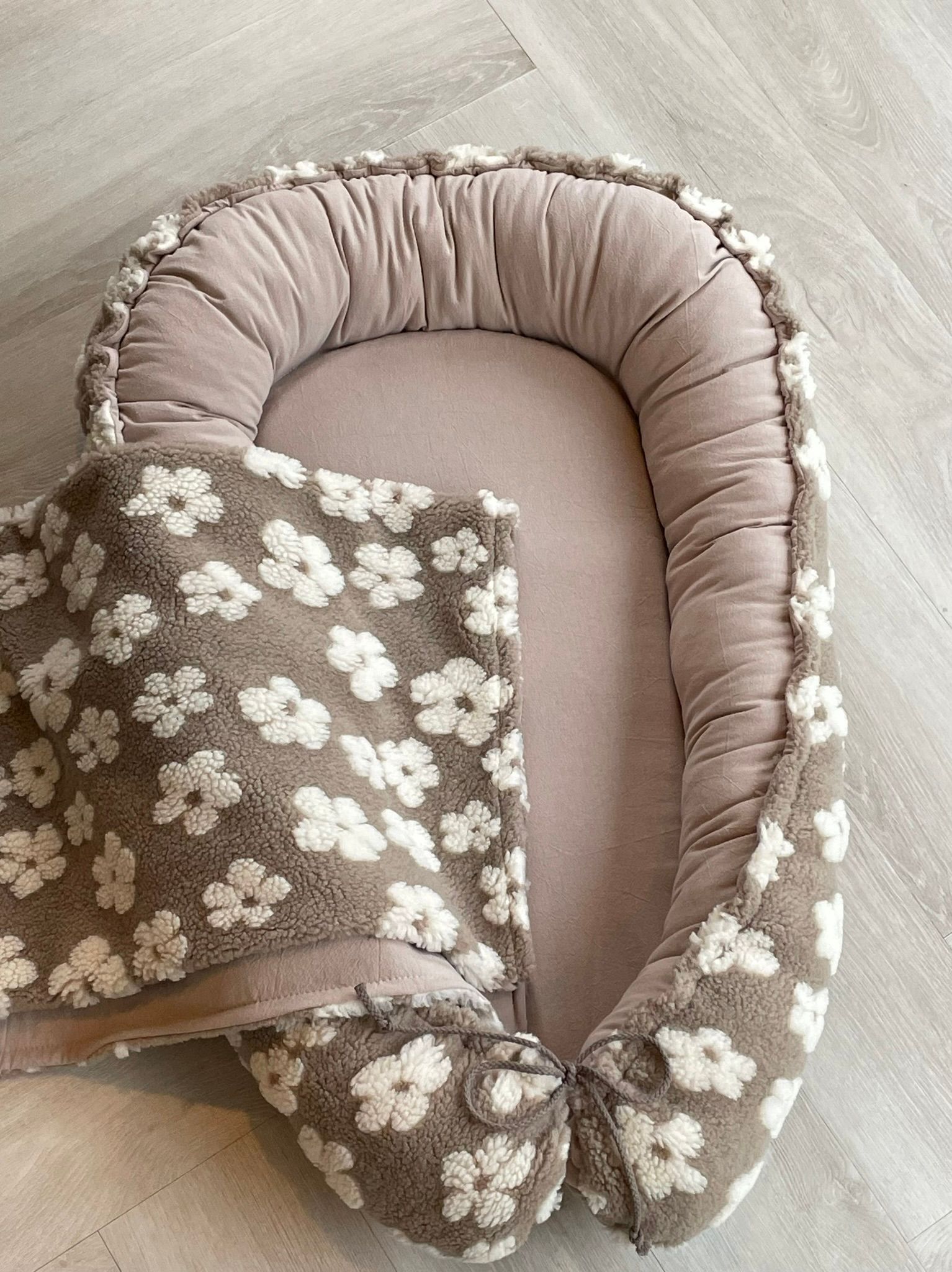 Babynestje taupe bouclé daisy