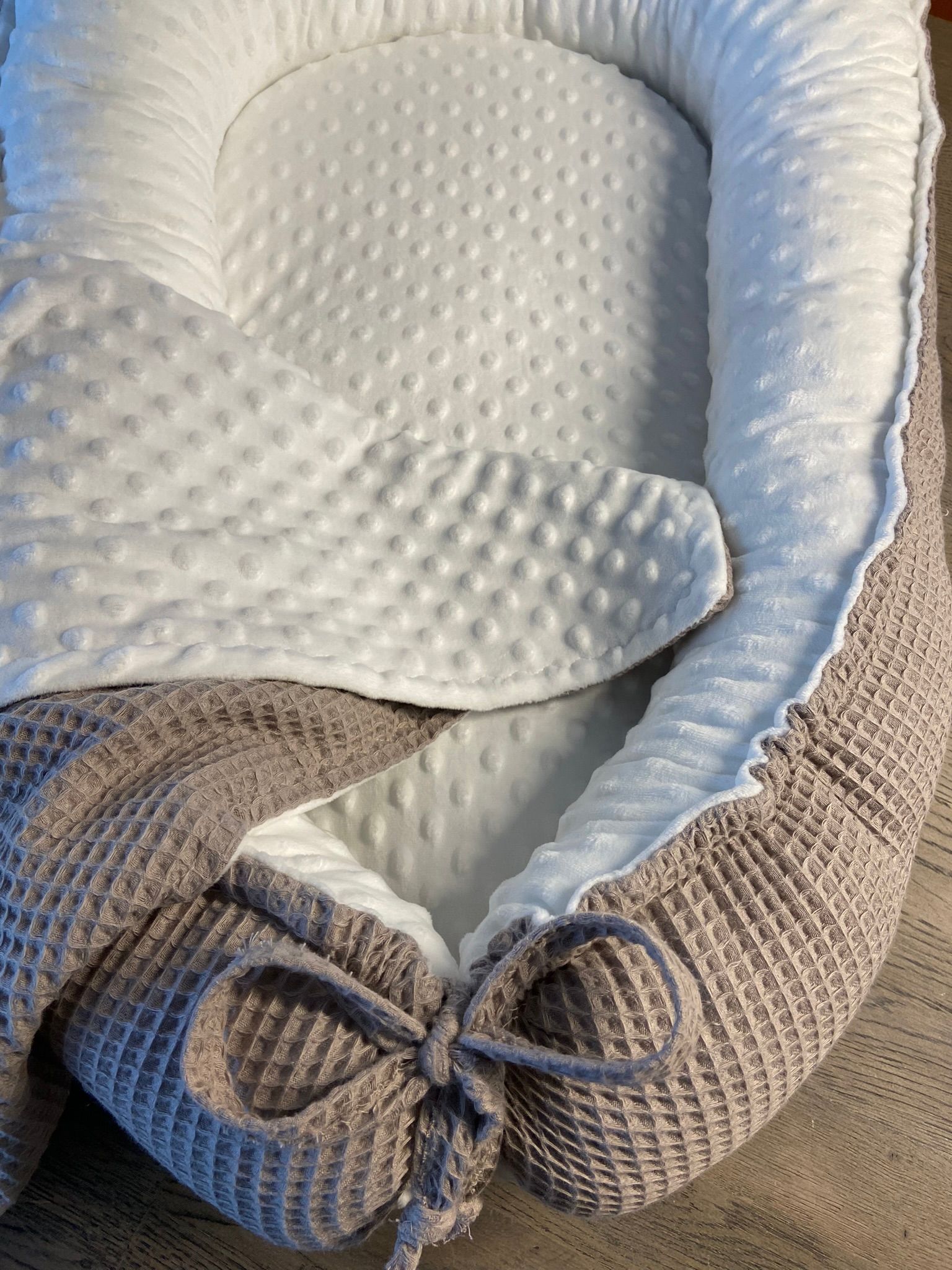 Dit babynestje is handgemaakt in NL met gecertificeerde stoffen.