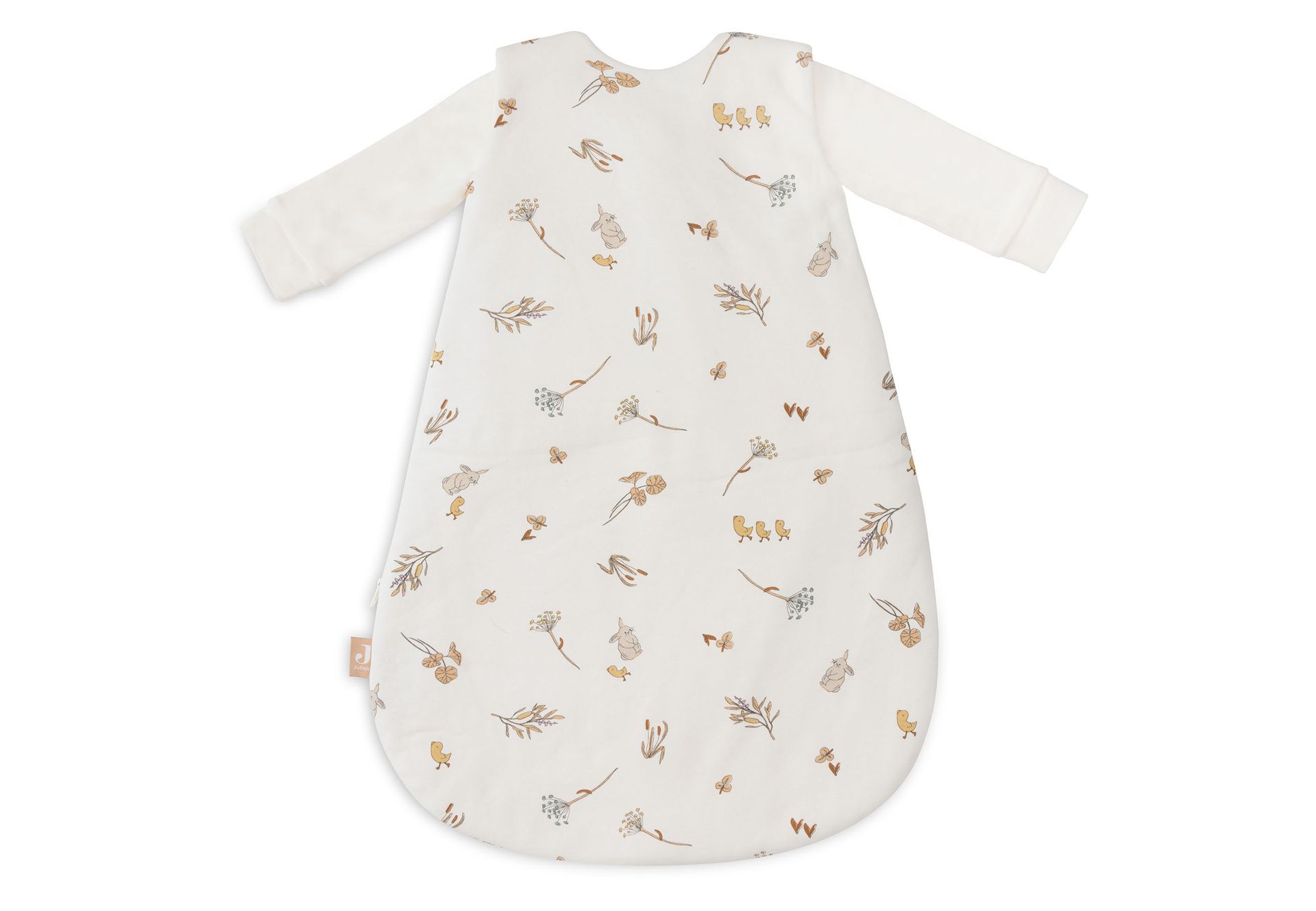 Deze 4-seizoenen slaapzak heeft 3 TOG-waardes, afhankelijk van de combinatie. De binnenslaapzak heeft een TOG van 1.0, de buitenslaapzak 2.5 en samen vormen ze een TOG van 3.5. Zo slaapt je kindje het hele jaar door comfortabel. De print is een all-over printje met eendjes, konijntjes en riverside plantjes op een Ivory kleurige achtergrond.