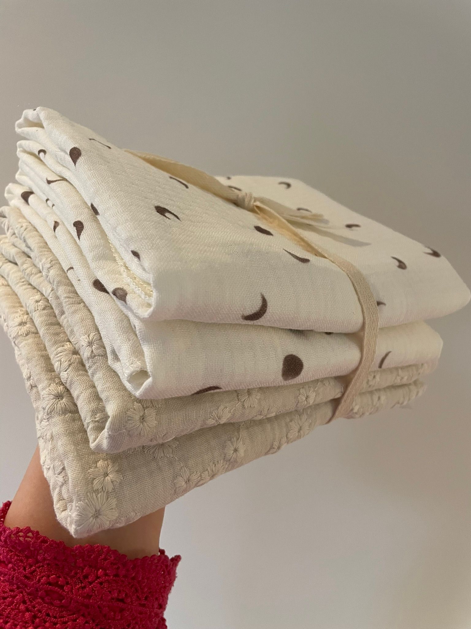 Deze voorbeelden van prachtige hydrofiele doeken, ook wel swaddles genoemd, zijn voorzien van mooie prints of komen in klassieke effen kleuren. Perfect voor warme zomerdagen en geweldig als knuffeldoek die geborgenheid biedt; ideaal voor verzorging na het badje, bij het verschonen of als spuudoek in een knus nestje. Zo praktisch in gebruik, ze mogen echt niet ontbreken in je babyuitzet.